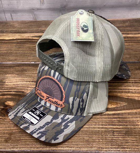 Mossy Oak Greenleaf Leather Turkey Feather Patch Mesh SnapBack