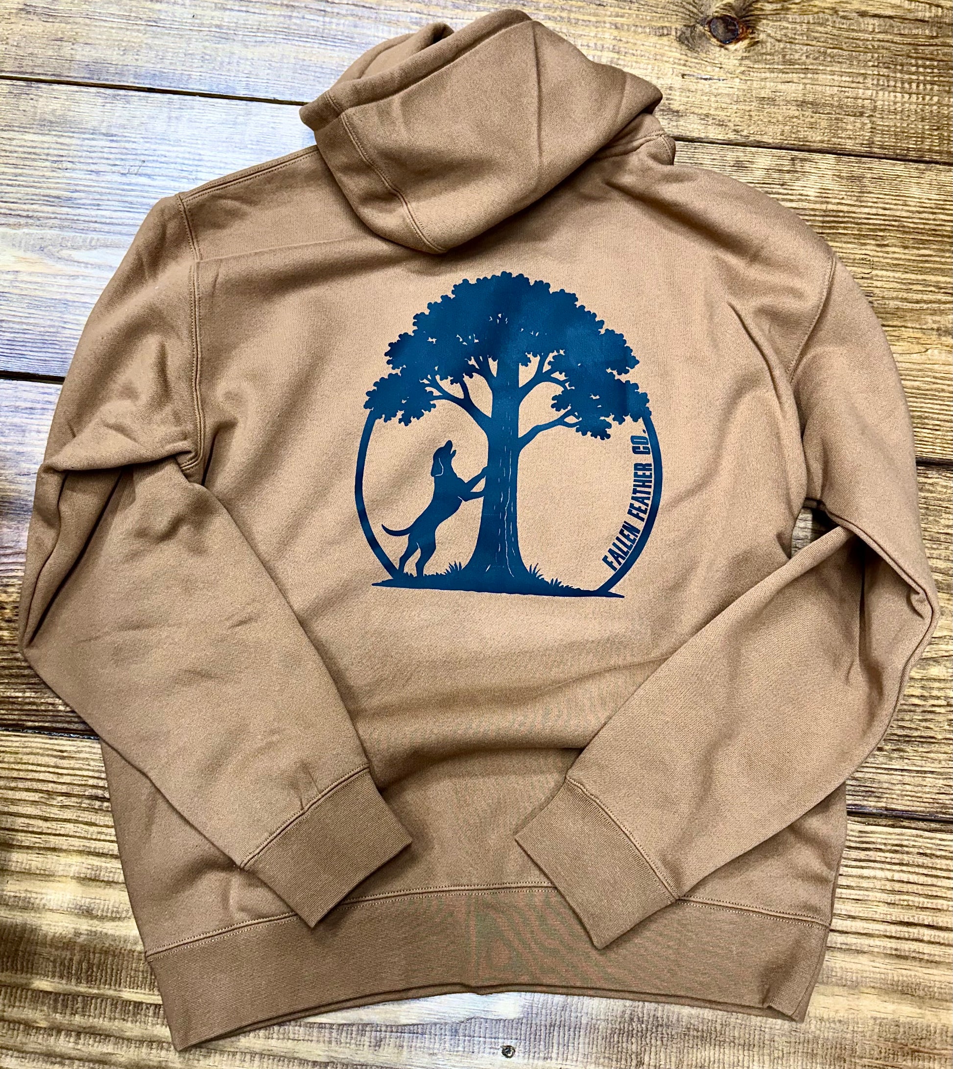 Treed logo with treeing dog hoodie.